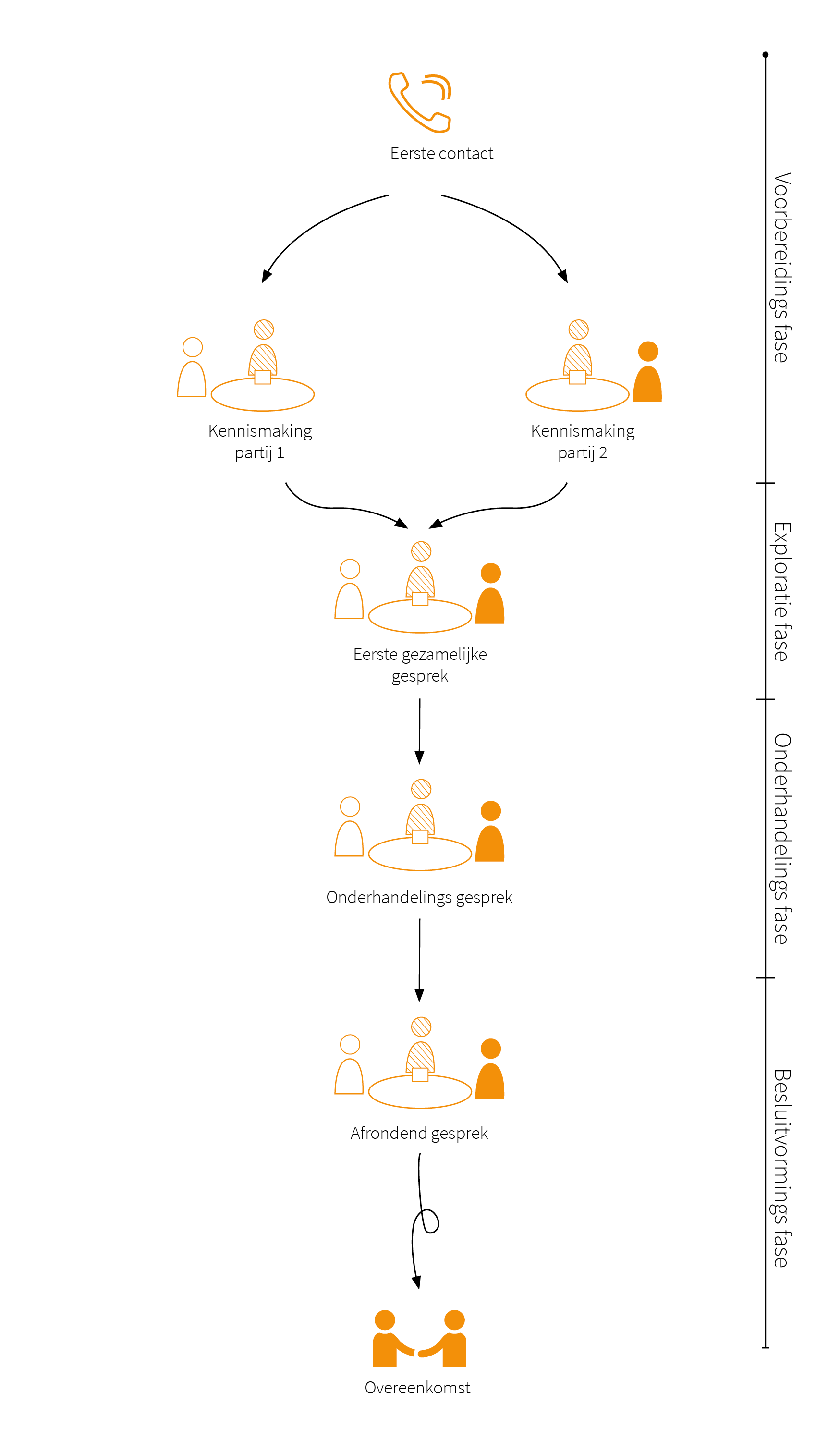 Dit proces verloopt geheel volgens het mediationmodel van de MfN en eindigt met een vaststellingsovereenkomst.
